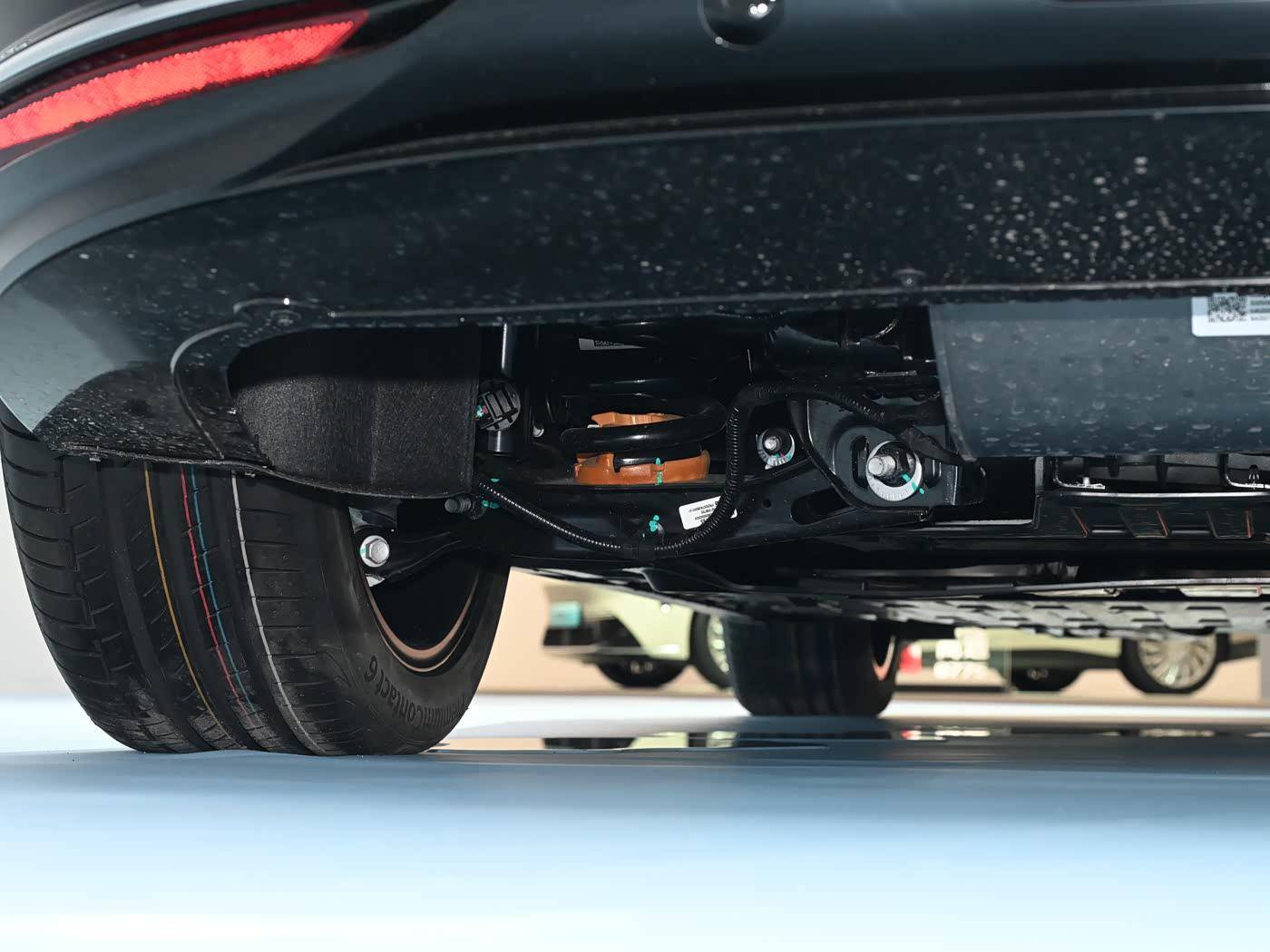 轮胎尺寸为235/50 R19,同时拥有前排侧气囊、前/后排头部气囊、前排中间气囊、前/后驻车雷达、360全景、全速自适应巡航、无框车门、电动后备厢、无钥匙进入/启动、LED远近光灯/日行灯、自适应远近光灯、自动头灯、场景灯语、不可开启全景天窗、全车车窗一键升降、车窗防夹手、前排多层隔音玻璃、感应雨刷、外后视镜电动调节/折叠/记忆/加热/倒车自动下翻/锁车自动折叠、15.6英寸中控屏、内置8155芯片、OTA升级、皮质多功能方向盘、方向盘加热、10.25英寸全液晶仪表、前排50W手机无线充电、仿皮材质座椅、主/副驾电动调节、前排座椅加热/通风、主/副驾座椅记忆、8喇叭扬声器、自动空调、后排独立空调、后座出风口、温度分区控制、车内PM2.5过滤装置。